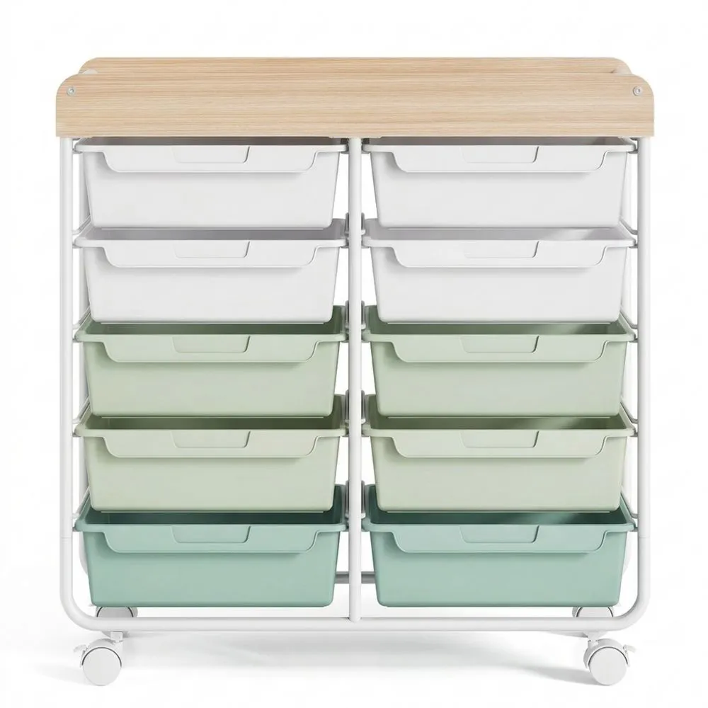 Vielseitiger Rollwagen mit 12 Schubladen und Arbeitsplatte für verschiedene Räume