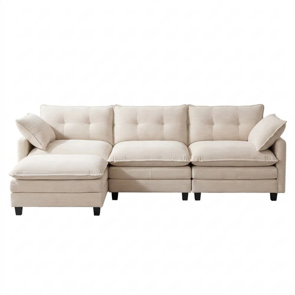 Verstellbares 3-Sitzer Schlafsofa mit beweglichem Hocker und Mehrlagenkissen, L-Form Beige