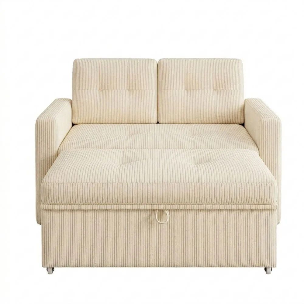 Verstellbares Schlafsofa mit Tisch und Seitentasche, 2-Sitzer, Cord Beige