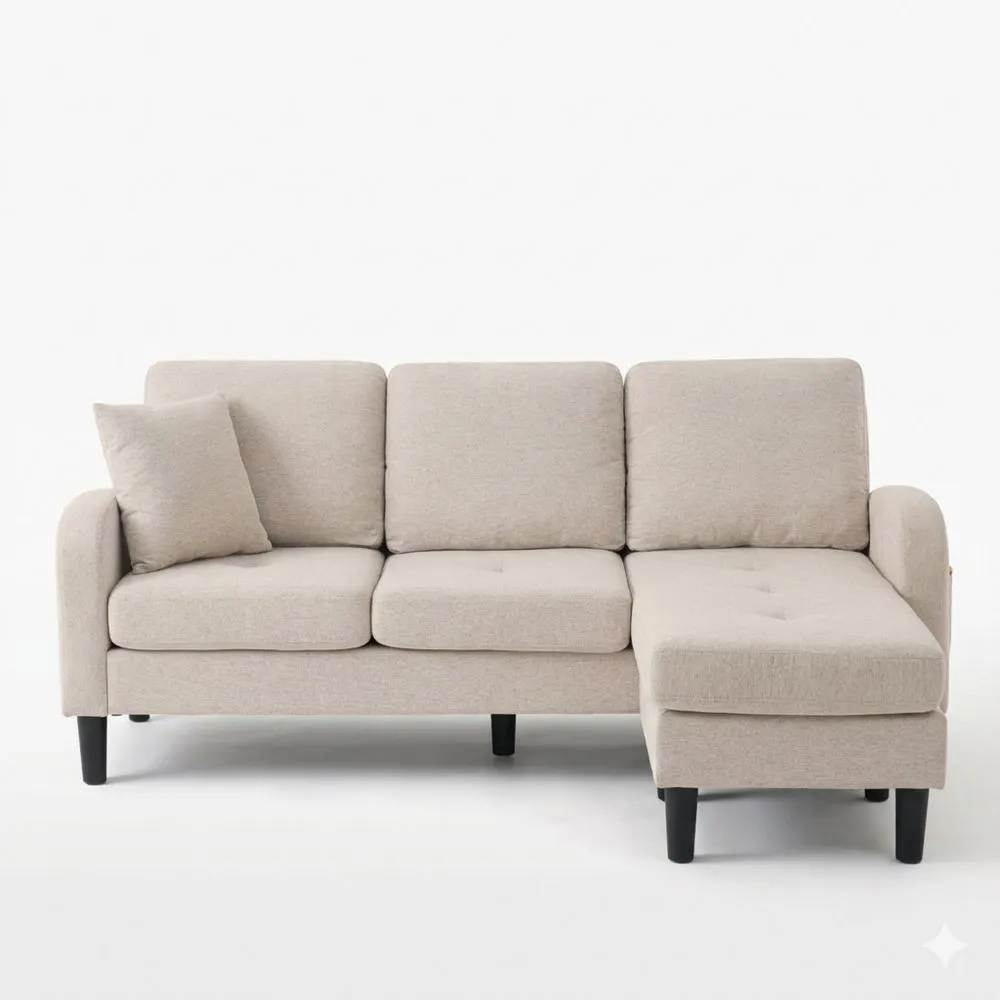 Gemütliches L-förmiges 3-Sitzer-Ecksofa mit Chaiselongue aus Baumwoll-Leinenstoff