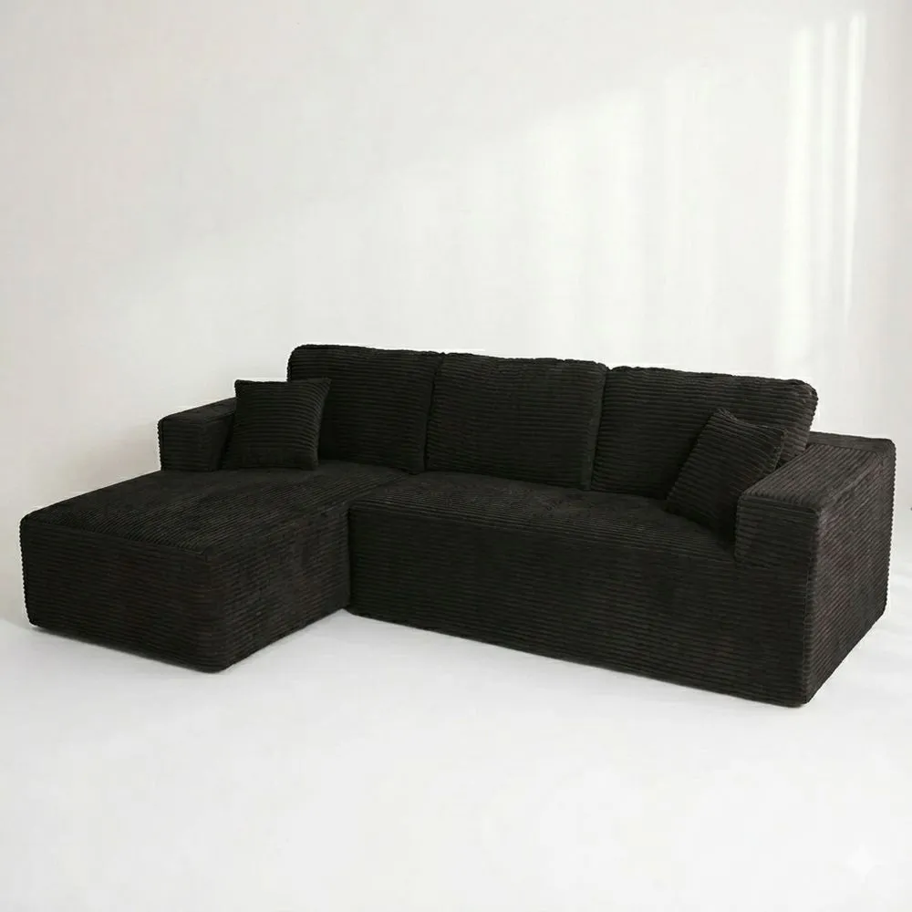 Ecksofa mit Schlaffunktion und Chaiselongue, extra tiefer Sitz, montagefrei, für Wohnzimmer, Schwarz