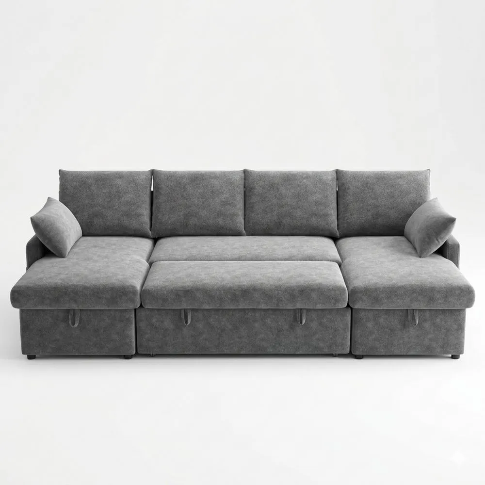 Ecksofa mit Schlaffunktion und Stauraum 265cm, Ausziehbares Sofa mit Chaiselongue, Dunkelgrau