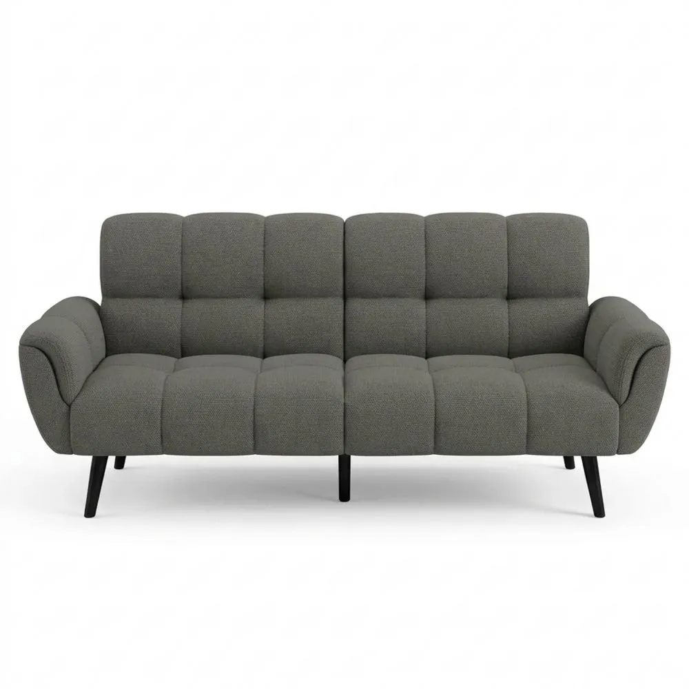 Multifunktionales Schlafsofa mit dreifach verstellbarer Rückenlehne für verschiedene Positionen: 110 - Sitzposition, 150 - Liegeposition, 180 - als Gästebett geeignet. Robuste Konstruktion mit Metallbeinen. Liegefläche von 195 cm bietet Platz für bis zu 3 Personen, belastbar bis 230 kg. Schaumstoffpolsterung und atmungsaktiver Leinenbezug. Pflegeleicht und schmutzabweisend. Passt in verschiedene Wohnräume wie Wohnzimmer und Gästezimmer.