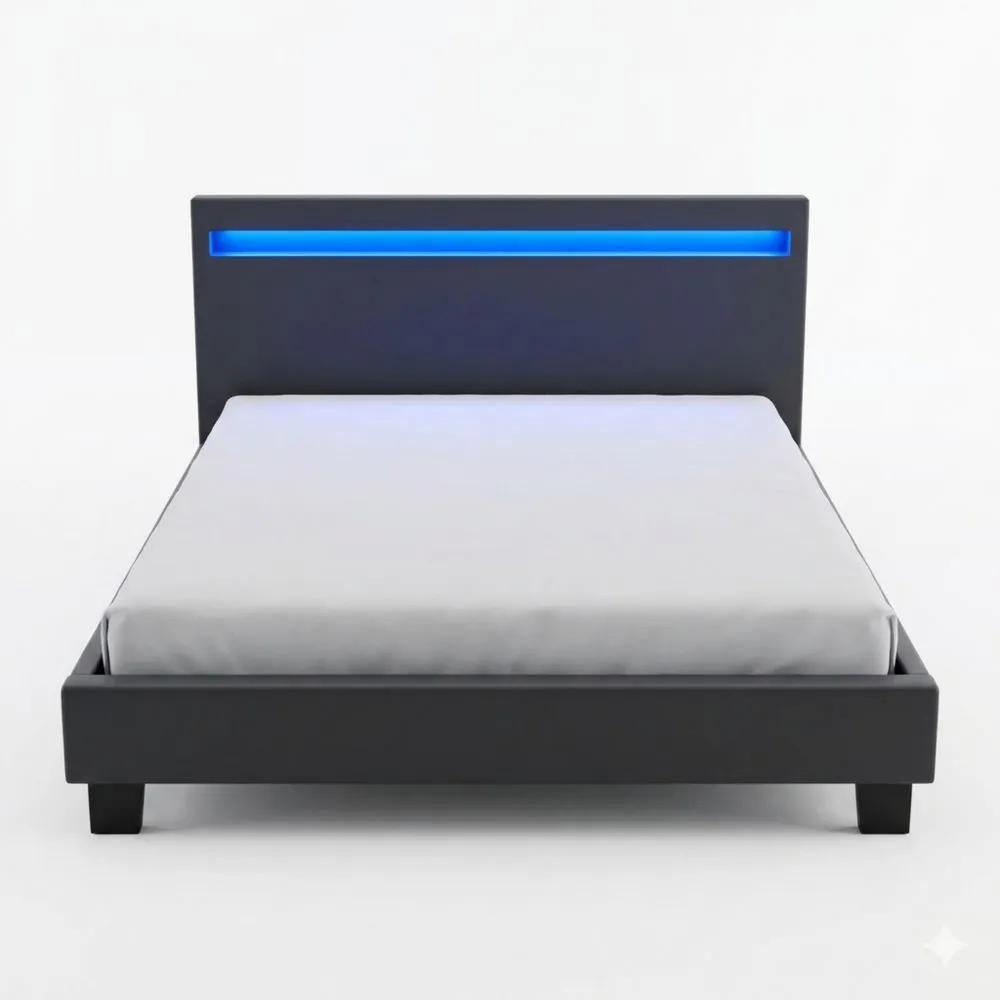 Das Polsterbett bietet eine komfortable Liegefläche und ist mit einer LED-Beleuchtung im Kopfteil ausgestattet. Die Beleuchtung ist in 16 Farben einstellbar und per Fernbedienung steuerbar. Die Liegefläche von 120 x 200 cm eignet sich gut für Jugendliche und alleinstehende Erwachsene. Der Bezug besteht aus Kunstleder, das leicht zu reinigen ist, und das Bettgestell wird von einem stabilen Holzrahmen gestützt.