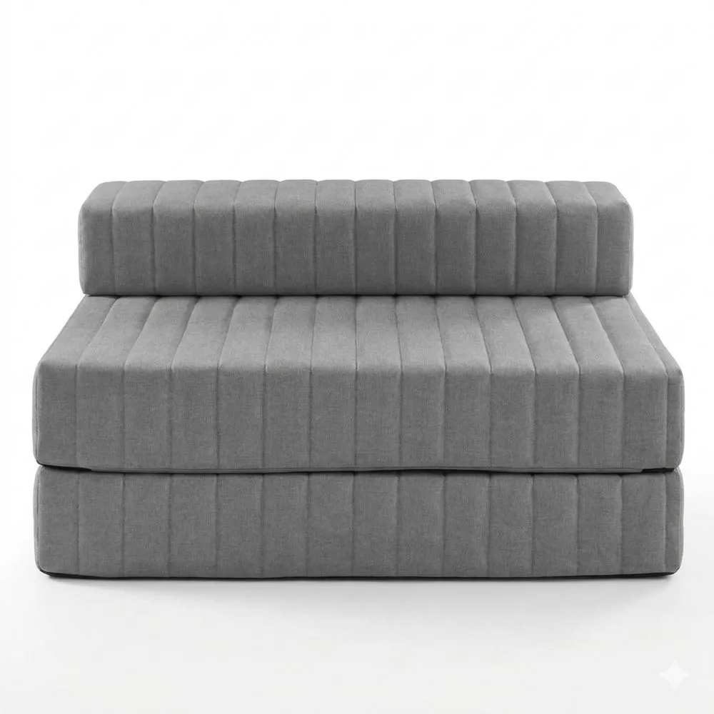 Hochwertiges Sofa mit Schlaffunktion, inklusive zwei Sofakissen. Der abnehmbare Bezug besteht aus 100% Polyester. Die Polsterung aus Komfortschaum befindet sich im Sitz- und Rückenbereich. Das Sofa hat eine Größe von 140 x 85 x 60 cm (Breite x Tiefe x Höhe) und bietet eine ausgeklappte Liegefläche von 200 x 140 cm. Die Sitzhöhe beträgt etwa 40 cm, die Liegehöhe ca. 20 cm. Der pflegeleichte Bezug kann bei 30°C gewaschen werden. Das Sofa lässt sich mit wenigen Handgriffen vom Sofa zum Bett umwandeln.