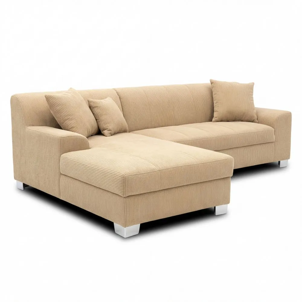 Das Sofa Capri bietet vielseitige Nutzungsmöglichkeiten in verschiedenen Wohnräumen. Die Polsterung mit Wellenfedern sorgt für angenehmen Sitzkomfort und Langlebigkeit. Die Couch kann einfach in ein Schlafsofa umgewandelt werden, ideal für entspannte Abende oder als Schlafmöglichkeit für Gäste. Die Rückenseite ist vollständig im Oberstoff bezogen und kann frei im Raum platziert werden. Das Sofa ist mit praktischen Metallfüßen ausgestattet.
