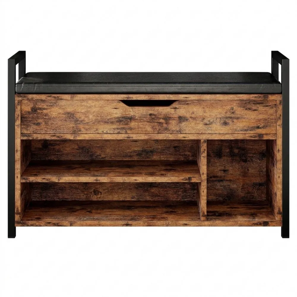 Die Sitzbank verfügt über offene Fächer zur Aufbewahrung und ist in Bereichen wie Flur oder Wohnzimmer nützlich. Ihre Abmessungen sind 30x100x62cm (TxBxH), mit einem Fach unter der Sitzfläche. Die offenen Fächer bieten Platz für Schuhe und andere Gegenstände. Bestehend aus einem stabilen Metallgestell mit Holzspanplatten und einem gepolsterten Sitz aus Kunstleder, ist die Bank für eine Belastung bis zu 130kg ausgelegt. Die Sitzhöhe beträgt 53 cm. Das Design kombiniert Elemente aus Metall, Holz und Kunstleder. Eine nummerierte Anleitung vereinfacht den Aufbau. Weitere Eigenschaften sind eine wasserabweisende und pflegeleichte Oberfläche sowie ein 2,2 cm hochdichtes Schaumstoffpolster. Der Rahmen aus brauner Holzspanplatte ergänzt das Design.